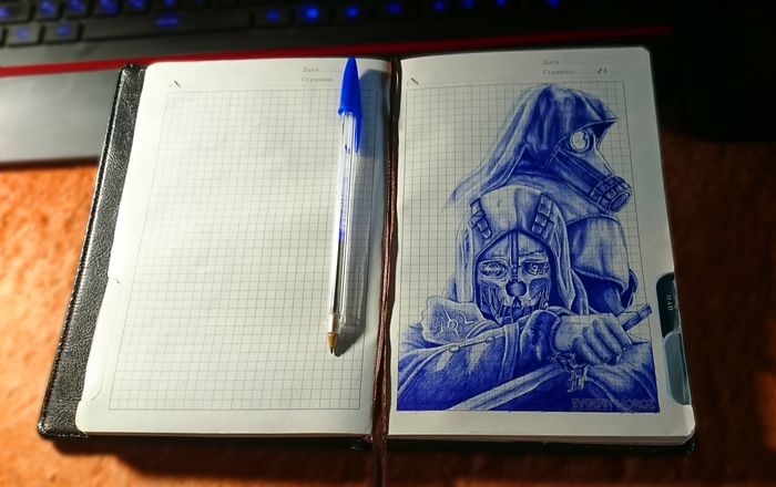 Мой фан арт по любимой игре. Использовал: механический карандаш, синюю шариковую ручку Bic Cristal. На рисунок ушло 8 часов.