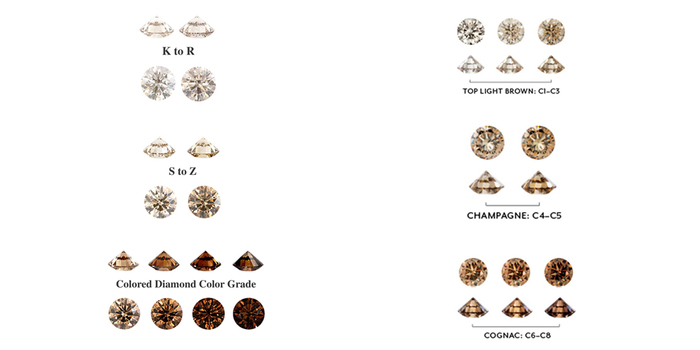- Бриллианты от S до Z получают буквенную оценку и термин "светло-коричневый".