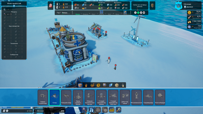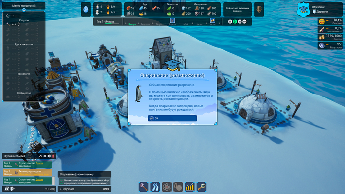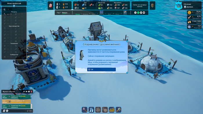 Да, строить предстоит много. но не только в этом заключается задача. Во-первых, нужно следить за популяцией. А потому, можно щёлкнуть тумблером и заставить пингвинов трахаться. Не, лучше мне не шутить