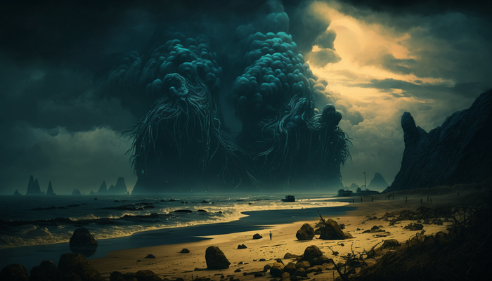 При создании нечисти — безликих и бесформенных созданий, живущих в особенных местах континента Таламур (место действия игры) — мы брали за основу шогготов из повести Лавкрафта "Хребты безумия". Как и шогготы Лавкрафта, наша нечисть может менять облик, но еще нашу нечисть невозможно четко воспринять. Потому на нашем арте нечисть и изображена как смутное видение. Сравните с артом шоггота от Eclectixx 2012 года! :)