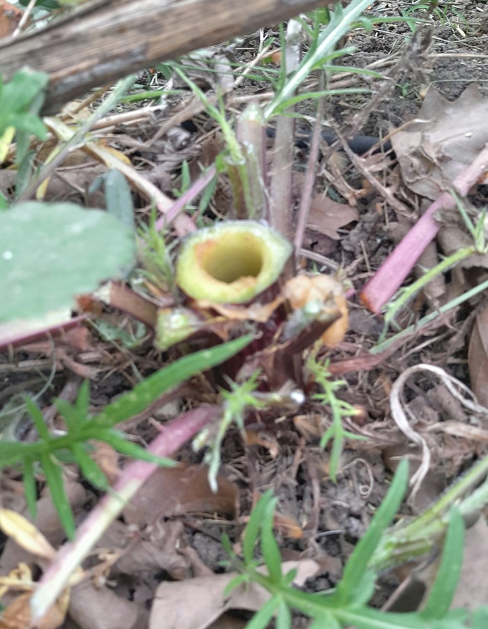 Вспомнил сегодня как удалять пни в саду и решил применить к нему. В принципе все просто. Срезать растение, просверлить отверстие или несколько, любого диаметра. Чем больше - тем лучше и насыпать туда селитры. Селитра тоже любая. У меня калиевая.