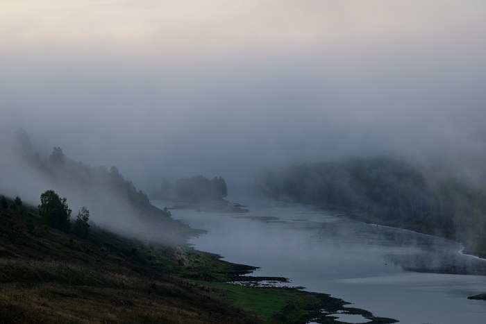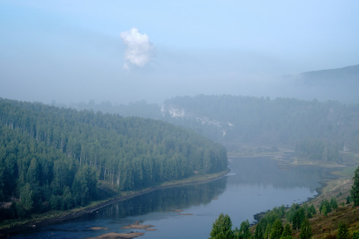 Уральские реки, текущие в довольно глубоких долинах, часто погружаются в туман. Лучшее время - рассвет, когда начинает испаряться роса и перепад температур образует в долинах облако густого тяжелого тумана.