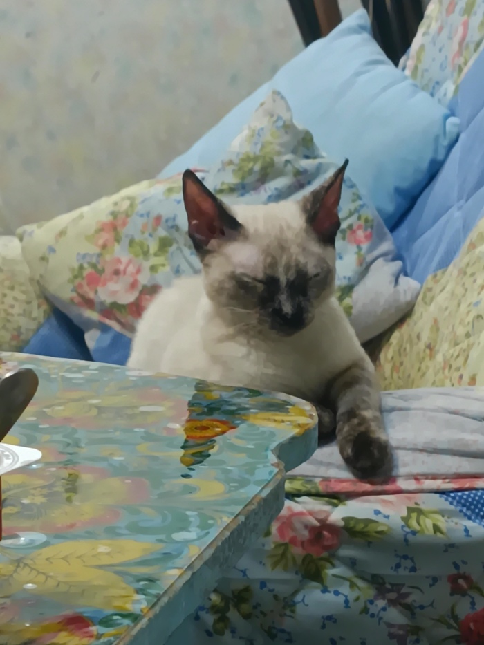 Здравствуйте. К сожалению, его уже нет. У него развилось какое-то аутоиммунное заболевание при котором пошло отторжение собственных клеток. Началось с того что потекли слюни и начали выпадать зубы. Два года давали ему иммунодепрессанты, которые смогли продлить ему жизнь. Когда стало ему совсем плохо мы его месяц возили на капельницы ежедневно и в итоге доктор сказал что мы сделали всё то смогли и предложили усыпить его, чтобы не мучить. Рыдали всей семьей. Он был прекрасен. Кота с таким интеллектом ранее у нас никогда не было. Интеллигент. Был брезглив. Никогда не ел если еда выпала из миски на пол. Пил только чистейшую воду. Терпел если не поменян горшок. С горшком кстати за всю жизнь к него не было ни единой ошибки. Спасибо вам за него. Мы его очень любили.