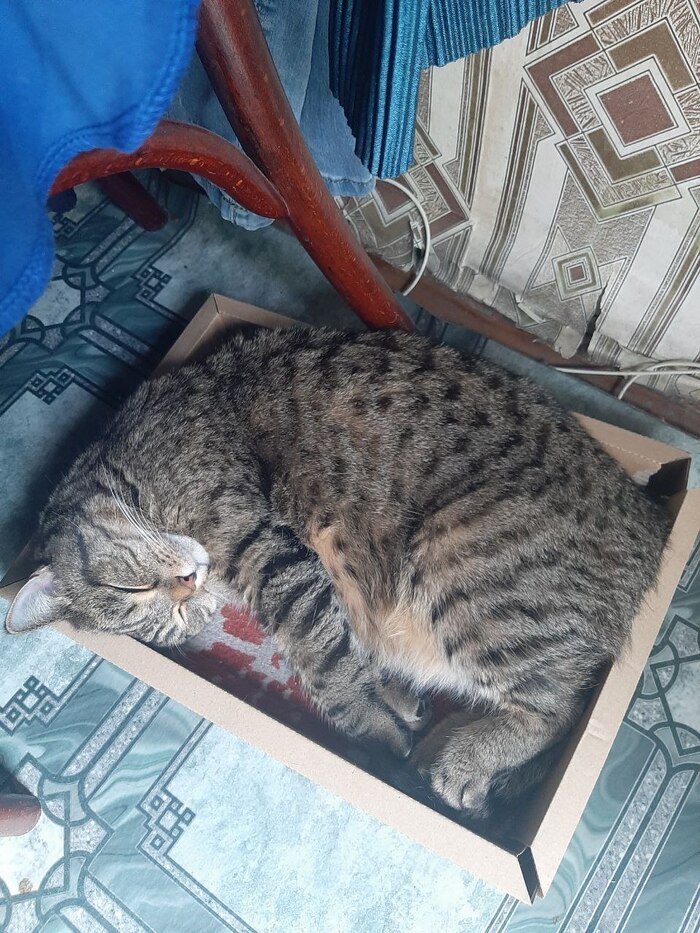 Я сейчас сконцентрировала все свои силы и средства на стерилизации бездомных кошек и вообще ни во кто не вписываюсь, но эта киса сидела на входе и громко ругалась из-за того, что у нее мерзли лапки. Я потратила время на опрос местных - ее подкинули примерно неделю назад.