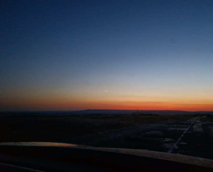 По дороге домой. Фото сложно передаёт, но яркий месяц и догорающее небо меня впечатлили.