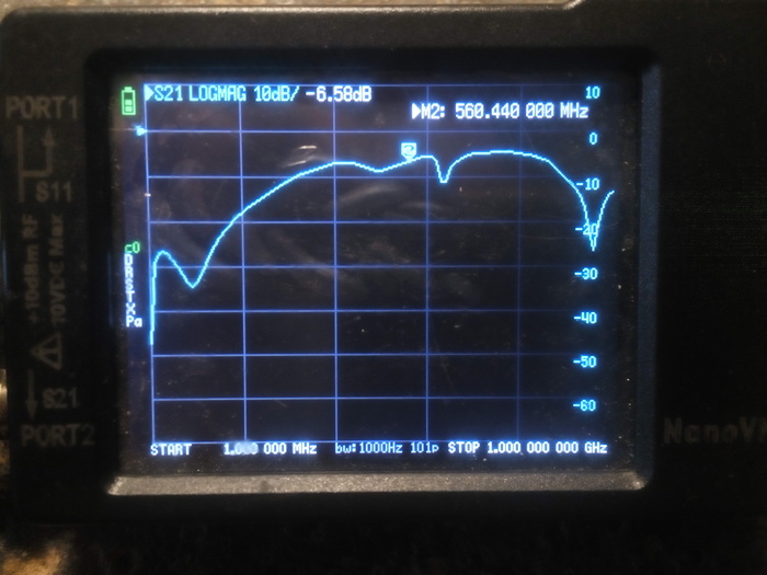 Вот полоса пропускания такого колечка от мегагерца до гигагерца с "родными" обмотками.
