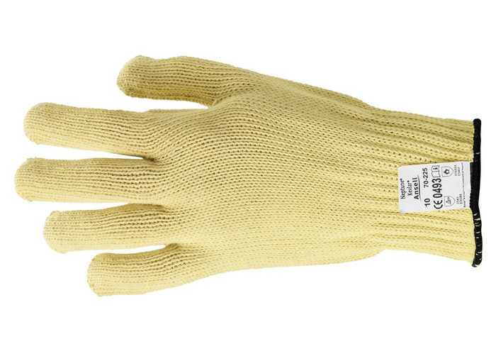 Они же кевларовые, хотя кевлар - торговая марка арамидного волокна. Кевларовая нить на разрыв прочнее стали. Но все недостатки, обусловленные плетением остаются - нет защиты от заноз, пыли, стружки. Точно так же они безразмерные и плохо сидят на руке.По прежнему заусенец зацепит и намотает перчатку. Часто кевларовые перчатки позиционируются как "защищающие от порезов", но защита эта весьма слабая, иначе вместо дорогущих кольчужных перчаток все мясокомбинаты покупали бы кевларовые. В некоторых задачах они могут показать себя долговечнее х/б перчаток, но не радикально, например при работе со стальной лентой.