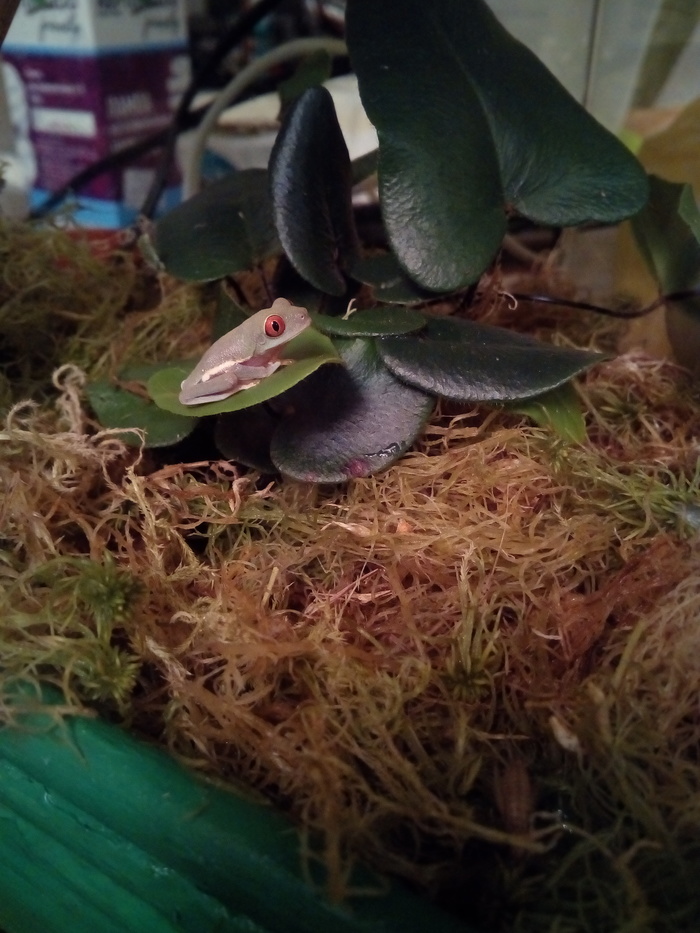 Неделю назад пополнилась наша коллекция еще одним удивительным малышом. Это красноглазая квакша, некрупная древесная лягушка.