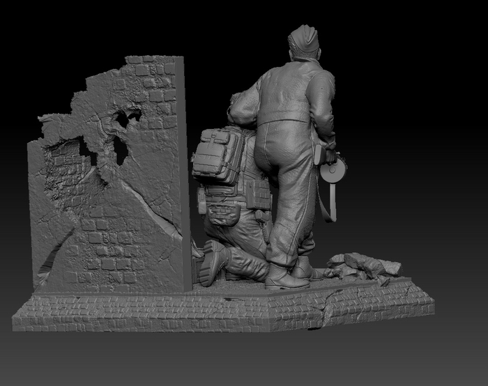 Теперь нужно все склеить, залить внутрь эпоксидку, ведь не забываем мудрость "Тяжесть — это хорошо. Тяжесть — это надежно. Даже если не выстрелит, таким всегда можно дать по голове.", да и бонус к крепости самой модели. на этом этапе были сложности, но связанные с внешними причинами в виде рыжего шерстяного чудища. Шлифуем, и красим, покрываем лаком