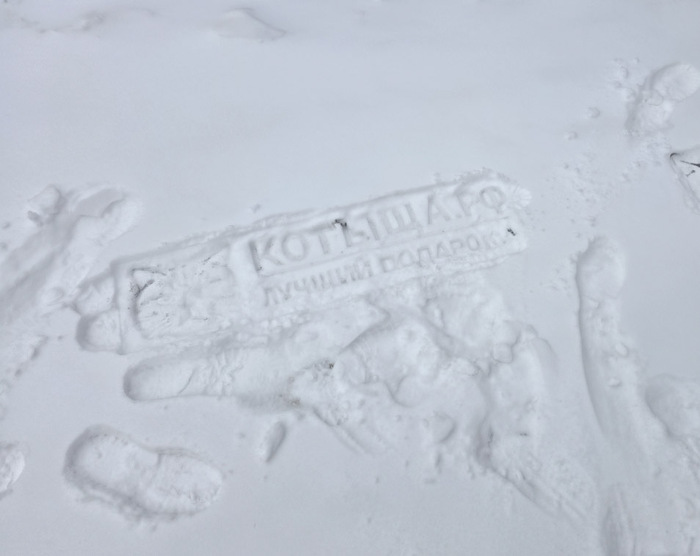 Можно признать, что эксперимент получился лишь частично удачным. Вероятно, стоит попробовать при другой температуре снега (чтобы он был более липким), протестировать водоотталкивающие покрытия для штампа, сделать текст крупнее. Но в целом идея, как мне кажется, достаточно интересная и точно заслуживает доработки.