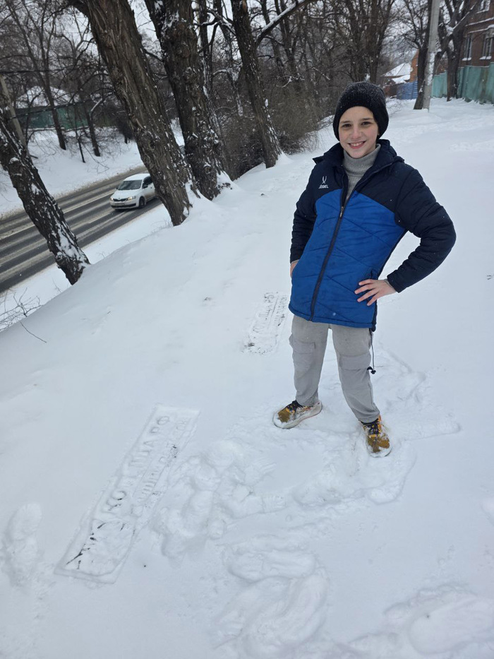 Сегодняшнее утро в Ростове-на-Дону примечательно свежим снегом — чему искренне радуются младший сын и наш пёс. Поэтому, помимо традиционного утреннего забега, было решено протестировать одну идею — снежный рекламный штамп.
