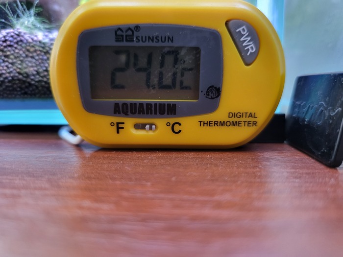 Температура в аквариуме выше 27 по наблюдениям не поднималась. Сейчас 24: