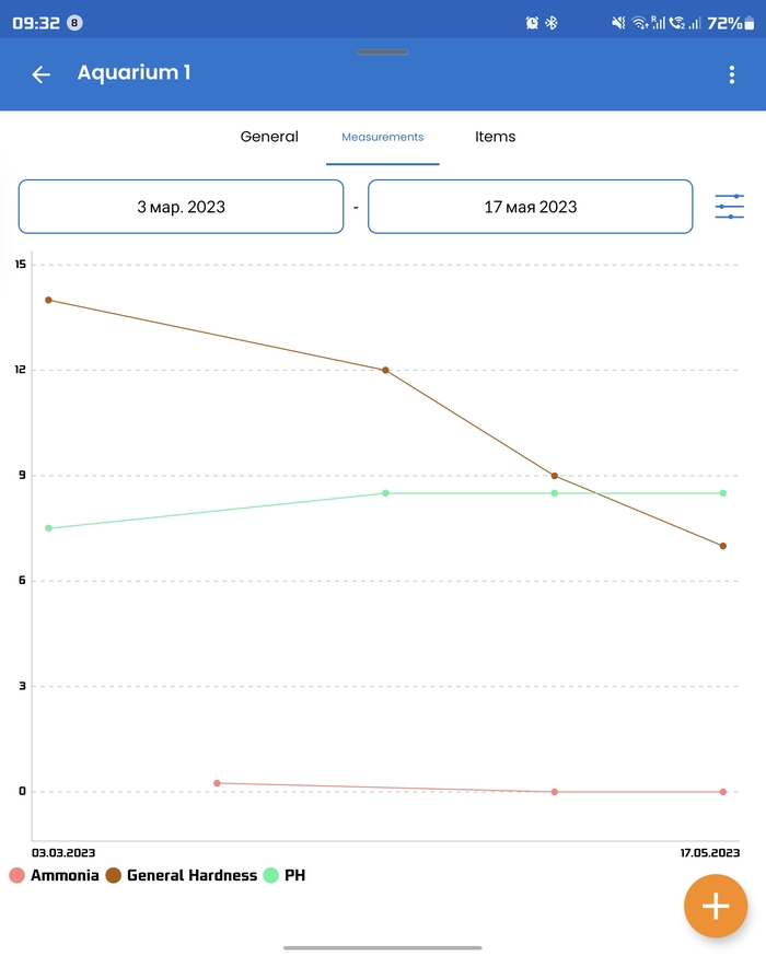 Вода осмос (ph 6.2) + водопровод (ph 7.6), в итоге получил ph 7.2, kh 5.
