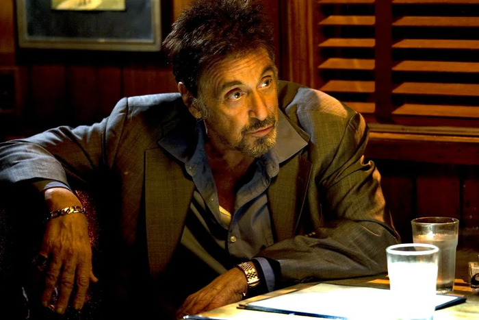 Такие большие диалоги нехарактерны для кино. Обычно вы не особенно много говорите, но тут монолог на три страницы, это необычно, и думаю, что это очень хорошо. Я никогда не смешиваю кино с реальной жизнью и думаю, что другие люди тоже этого не делают. В этой сцене был оттенок нереальности, да и что можно ответить, когда вам говорят столь дикие вещи? В этом весь класс и вся прелесть сцены. В каком-то смысле он получает пулю за то, что оскорбляет меня.