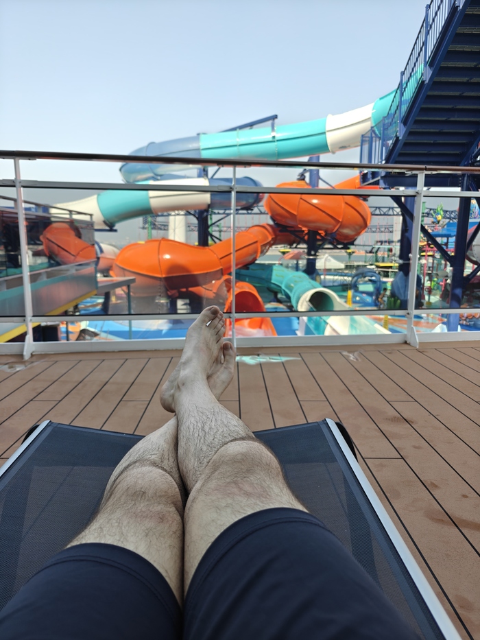 Я ходил в тренажерный зал (он хороший. В Москве хожу в ворлд класс и на корабле лучше, но по размерам не большой совсем, но всем хватало) аквапарк, панда парк, бегал по беговой дорожке по палубе, ел, спал, читал, фотографировал, снимал и т.д.