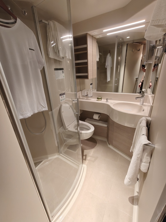 1. Каюта: без окон на четверых, Я был уверен что это нас погубит. Маленькая каюта без вентиляции...но оказалось очень даже не плохо. Вентиляция отличная, есть климат контроль (а мы ооочень требовательны к условиям, спим всегда с открытыми окнами в любое время года), отличные матрасы. Все компактно но очень продумано. В каюте только ночевали и спали очень хорошо. Убирали каждый день, белье качественное, вещи есть где просушить, два вместительных шкафа, чайник, фен, гели, полотенца. Халата у нас не было