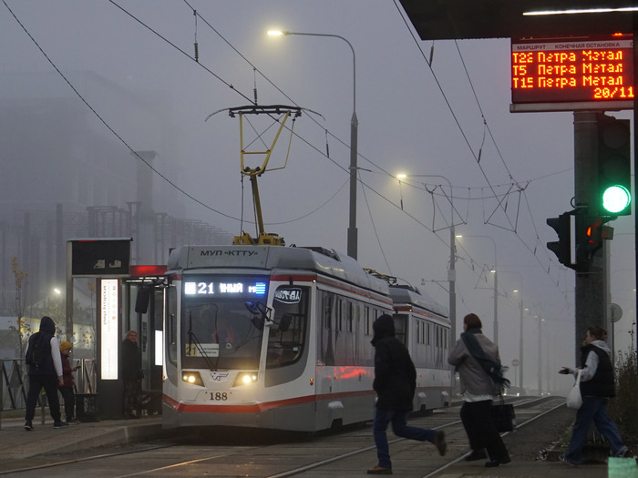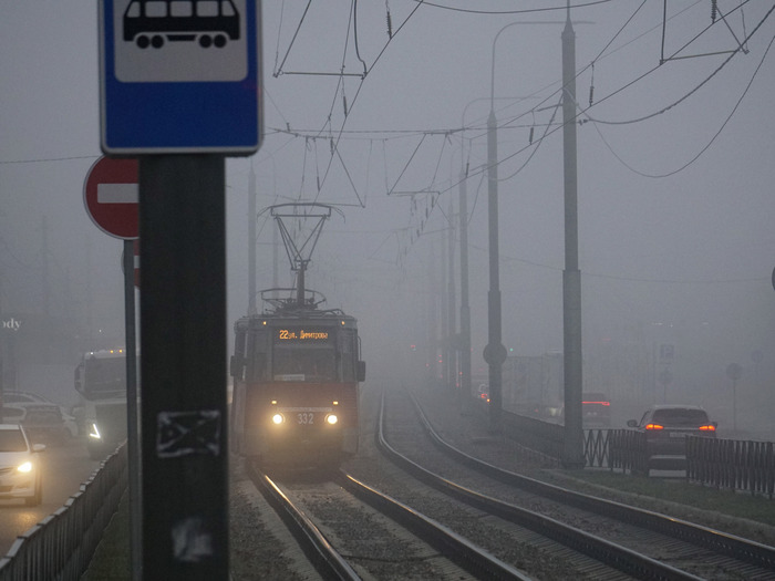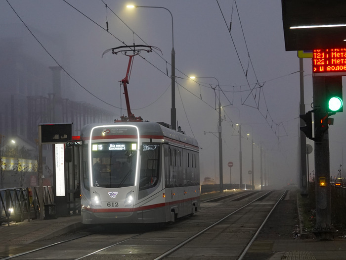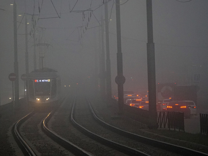 [моё] Транспорт Туман Трамвай Трамвайные пути Электротранспорт Ктм-5 Краснодар Фотография Длиннопост
