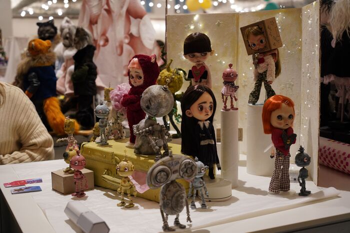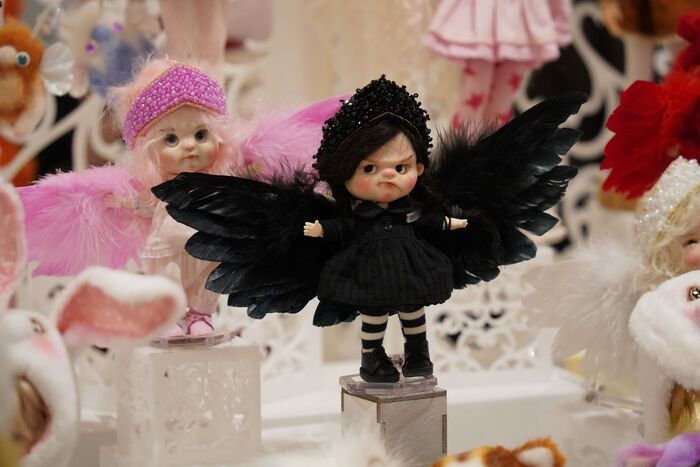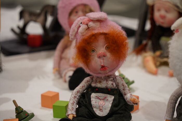 Куклы слеплены из полимерной глины. Тело шарнирное , парики съёмные из ангорской козы.