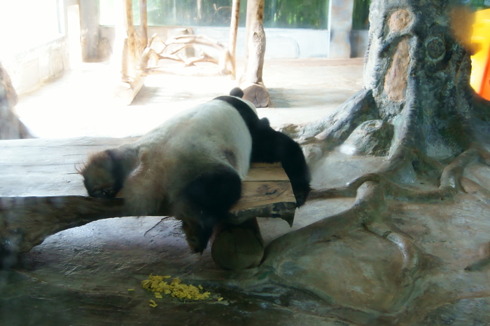 Панды выйти не захотели ((. На улице под сорок при влажности 100%, а у них там кондиционер и после обеденный сон. Абсалютно не преспособленная к жизни скотинка. За всех отдувались гималайские и бурые медведи.