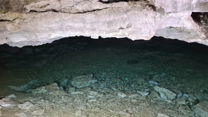 Большое подземное озеро: самое крупное в пещере, с кристально чистой водой и ярко-голубой окраской. Его площадь составляет 1460 квадратных метров, а глубина доходит до 5 метров.