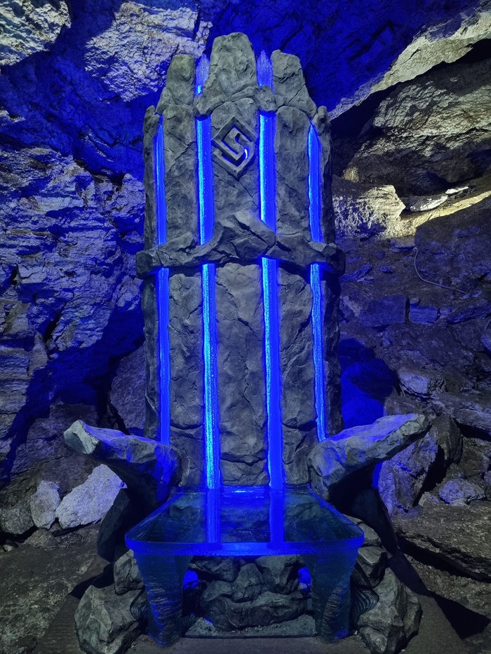Грот Данте: причудливые скальные образования и ледяные скульптуры создают атмосферу тишины и таинственности. Красная подсветка подчеркивает красоту этого места.