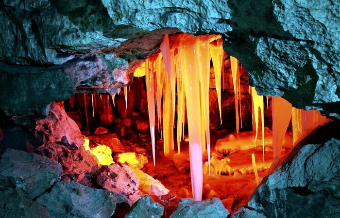 Зимой холодный воздух опускается вниз, охлаждая стены гротов до -10°C, а в лютые морозы температура может опускаться до -30°C. Но не бойся, в глубоких частях пещеры всегда теплее: ледяные ветры, дующие на входе, превращаются здесь в приятный свежий бриз.