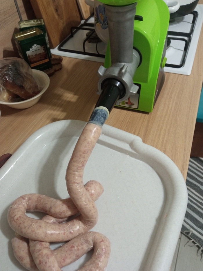 Когда я впервые делал купаты, то пренебрег тому, что советовали эксперты-технологи на форумах и видео. Ну подумаешь мясо набить в оболочку и пожарить его, что тут может быть сложного. Котлеты я умел делать и думаю это не сложнее. Тем более, что любил котлеты более постные так и решил, что надо взять просто мяса (окорок) и накрутить его в оболочку через насадку с мясорубкой. Мы же купаты из мяса делать будем, а не из жира и шкур как в магазинах - думал я :). Как результат получил очень сухие и рыхлые купаты, конечно их можно было есть, но текстура была очень плохая. В общем купаты не удались.