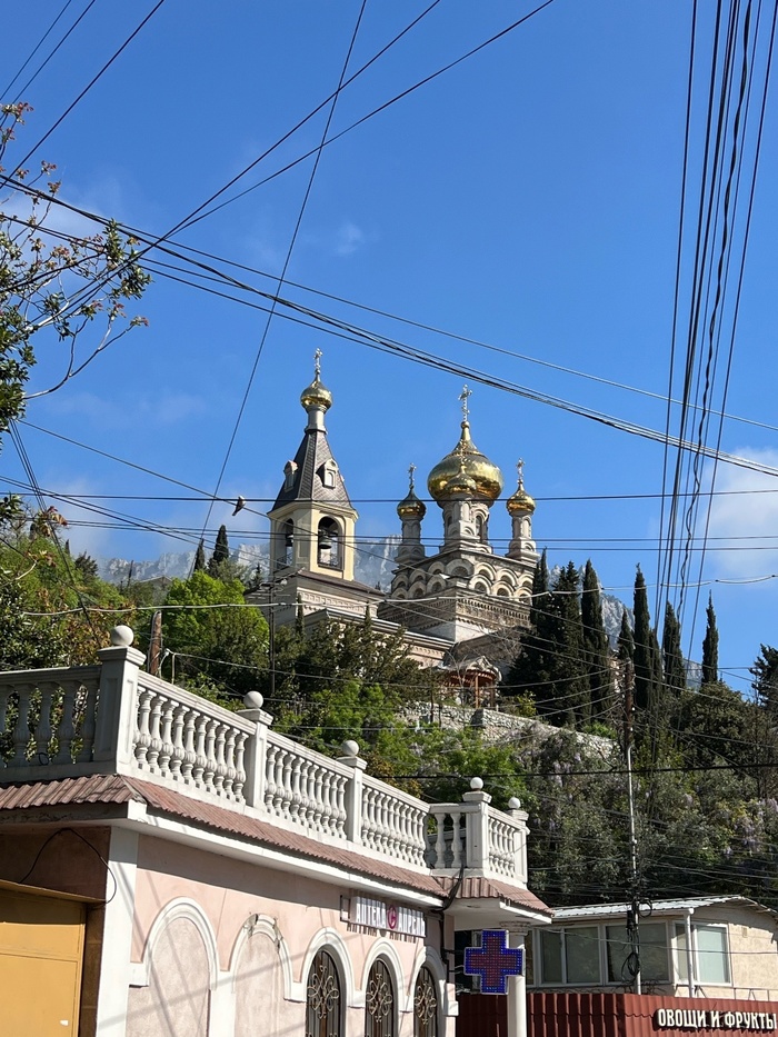 Завершили маршрут у санатория “Днепр”, откуда направились пешком непосредственно в Ласточкино гнездо. Архитектура несколько своеобразная и крайне непривычная для обывателя, однако вид с нее на море открывается отличный!