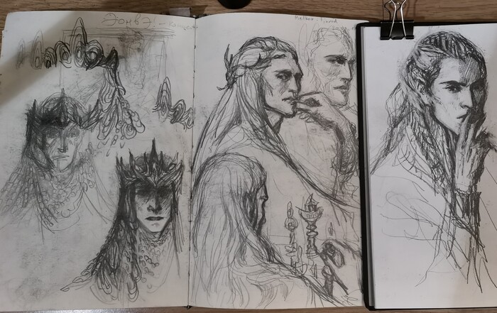 Здесь эскизов тоже было не один и не два, возможно вернусь к этой теме, хотелось ещё что-то более близкое по композиции к тому кадру из фильма.
