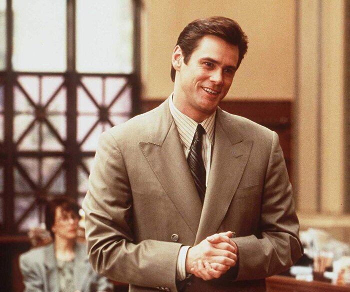 19. Костюмеры специально одели Флетчера в узкие костюмы. «Это символизировало его зажатость в паутине лжи», — объяснял дизайнер. Но Керри терпеть их не мог «Я едва мог дышать!» В итоге после съемок он устроил номер — сжег пиджак в гримерке. Этот акт освобождения позже повторил его герой в финале, срывая галстук...