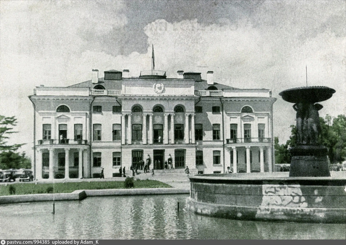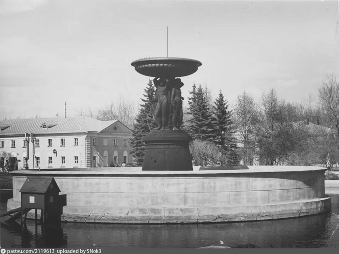 Фонтан в уже несколько изменённом виде перед зданием бывшего Александринского двора в 1938 году. С сайта www.pastvu.com.