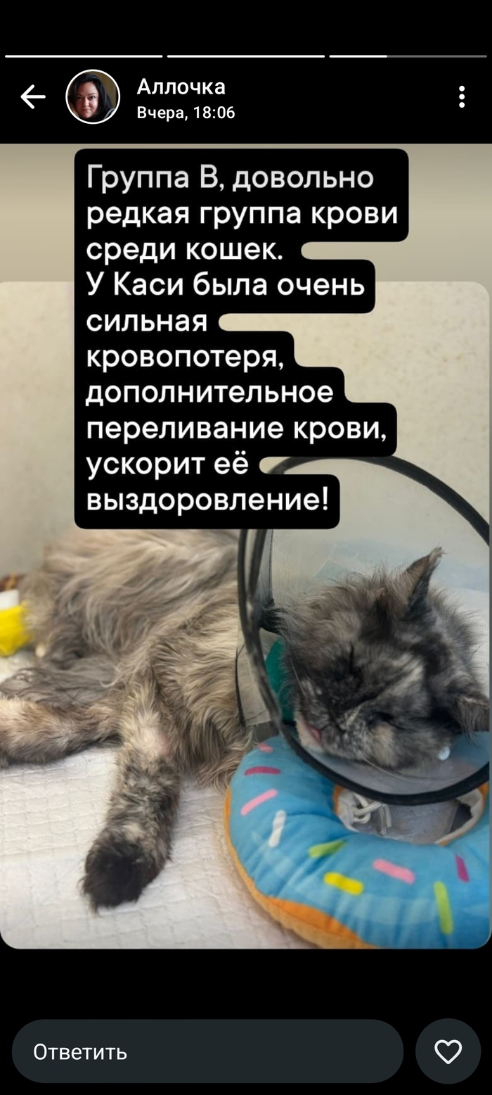 Нужна помощь для Каси! Есть нюансы. Кошка/кот не старше 8 лет, привит и чтобы не было хронических заболеваний. В Луховицах группу крови бесплатно проверят, в других местах эта услуга от 2.5 т.р стоит. И готовность приехать в Рязань там клиника в которой Кася лежит, там будет переливание . Телефон для связи мама Кассиопеи Алла +7 929 531-91-92 либо папа Сергей +7 963 760-75-68