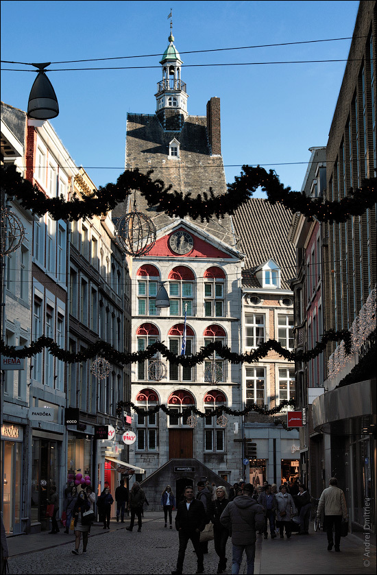 В 17 веке Маастрихт находился во власти двух влиятельных людей - герцога Брабантского и князя-епископа Льежского. Поэтому здание ратуши оказалось поделено на две части. Левое крыло было отдано герцогу, правое - под кабинеты епископа.