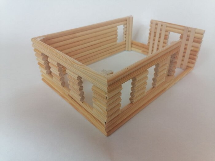 После того, как я скрепил стены между собой и сделал окошки, можно соединить их в единое целое: