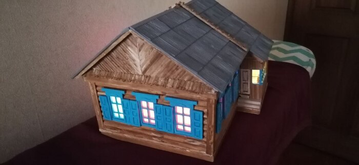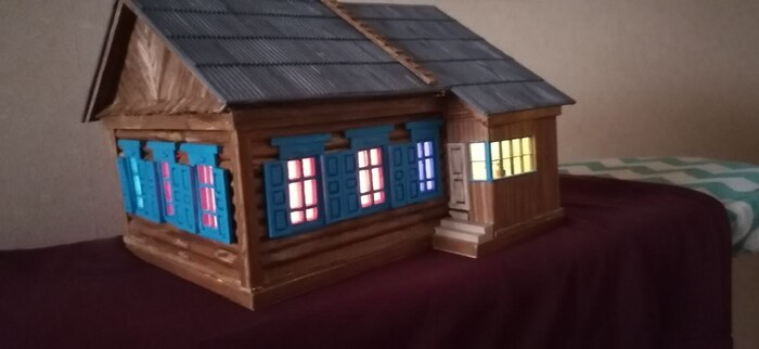 Этот домик я просто нашёл в интернете. Мне он очень понравился и я решил его сделать, чтобы набираться опыта. Домик внешне очень уютный захотелось попробовать сделать облицовку трубы, цоколь, закрепление проводов подсветки,