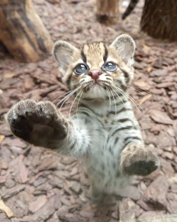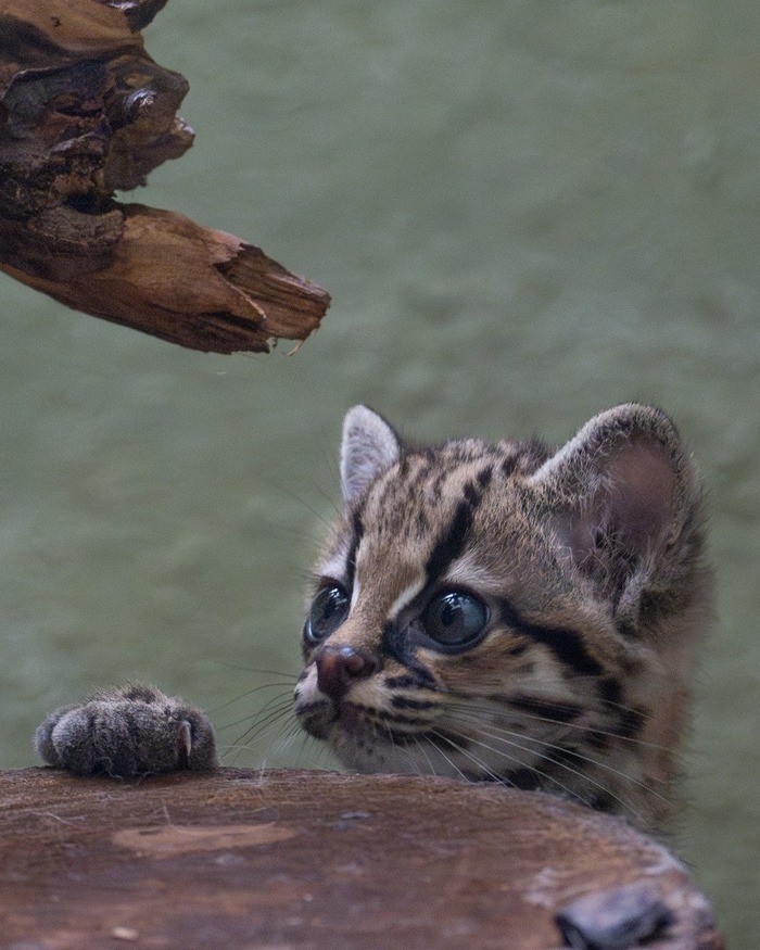 Маргаи – невероятно крутые акробаты. Подобно белке, этот котик может спускаться по деревьям головой вперёд, потому что кости его задних лапок соединены так хитро, что их можно поворачивать на 180⁰.