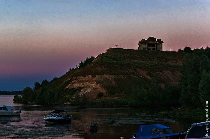 Затем превратился в холм, у подножия которого, прямо у кромки воды, теснились дома — каждый на своей отдельной насыпи, словно отвоёвывая у реки клочок земли.