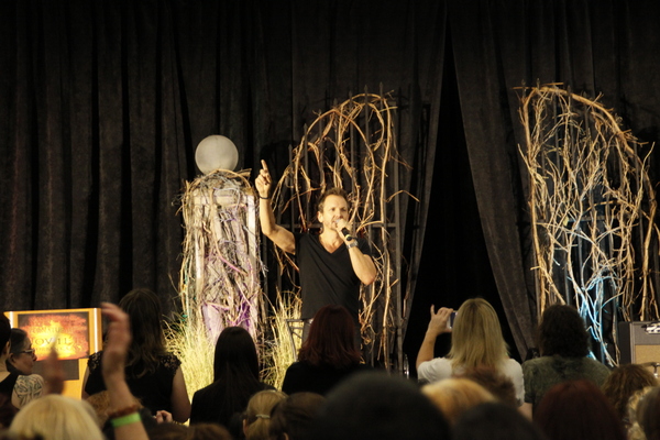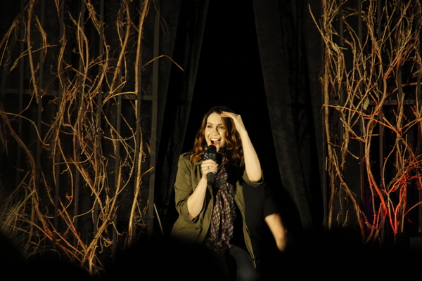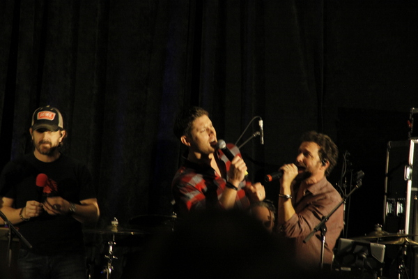 Открывают шоу Роб Бенедикт (играл пророка Чака и бога) и его группа Louden Swain. К слову сказать, и играют и поют вполне неплохо. Роб сразу нормально так зажег зал, пробежался по проходам, давая пять всем, кто выставил руки, поднялся на сцену, немного поболтал и объявил первого гостя. Это была Alaina Huffman, играла Аббадон в первых сезонах. Она вышла, немного рассказала о себе и перешла к вопросам из зала. Вопросов было не очень много и, когда они кончились, было видно, что она просто не знает, что делать. Из всех трех дней это было самое скучное выступление. Хотя и минутки веселья были тоже. На любой вопрос, где от нее подразумевалось назвать мужское имя персонажа, она отвечала "Кроули". И, когда ей задали вопрос о том, с кем она бы хотела сняться в постельной сцене, она посмотрела на спрашивающего и спросила: "Ты ведь уже знаешь ответ, просто хочешь, чтобы я его сказала?"