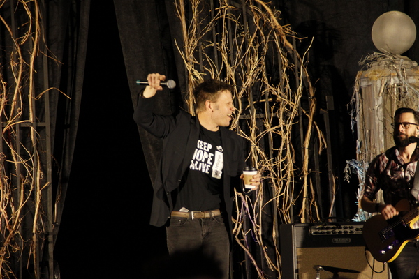 Следом за ней вышел Джулиан Ричингс. Он играл Смерть. Больше всего я ждал скуки именно от него. Каак же я ошибался. Он поднял зал буквально с первых секунд. Прыгал на сцене, веселился, шутил. Очень все было эмоционально и взаправду. Запомнилось, как он рассказал (в ответ на вопрос, узнают ли его на улице) случай, как он ехал в лифте, двери лифта открылись, в лифт тут же шагнула парочка, а Джулиан стоял с мрачным лицом. Когда один из этой парочки поднял глаза, он реально закричал (Джулан изобразил ужас): "Аааа!! Смерть!!!".