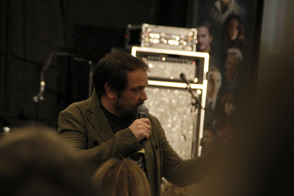 Вот о Марке Шеппарде у меня какие-то двойственные впечатления остались. Наверное это потому, что он англичанин ))) С самого начала выступления он спустился со сцены и ходил между рядами. На сцену за все свое выступление он больше не поднимался. Залу это, конечно, очень нравилось, но на вопросы он отвечал как-то очень односложно. Точнее почему "как-то", просто односложно. Если остальные актеры старались развернуто отвечать на вопрос, когда-то с юмором, когда-то серьезно, то он больше шутил между вопросами, а на вопросы отвечал просто "да", "нет", ну или другую подходящую фразу, чтобы ответить очень быстро.