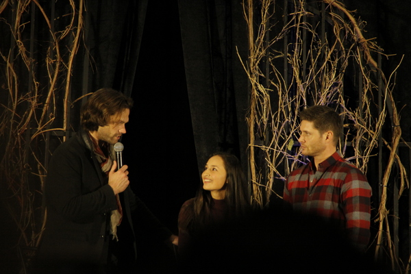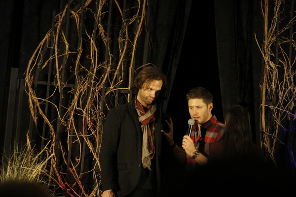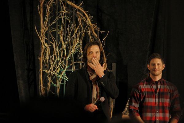 Понравился один вопрос. Девушка спросила, "Вот у вас в сериале было столько разных воплощений, для Сэма это Одинокий Сэм, Сэм, который убивает демонов своей силой, Сэм без души, для Дина это Дин-Демон, Дин в детстве, еще какой-то Дин. Какое воплощение нравится вам самим?". Ну, они немного подумали, Джаред сказал, что ему нравится Одинокий Сэм, Дженсен сказал, что ему нравится Дин-Демон.