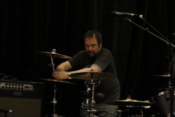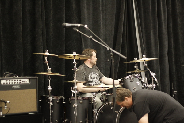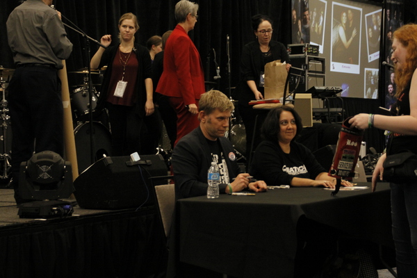 Ну и бонусом Люцифер раздает автографы, а Марк Шеппард настраивает ударную установку (он играет) для концерта в субботу (мы на нем не были, но приготовления видели)