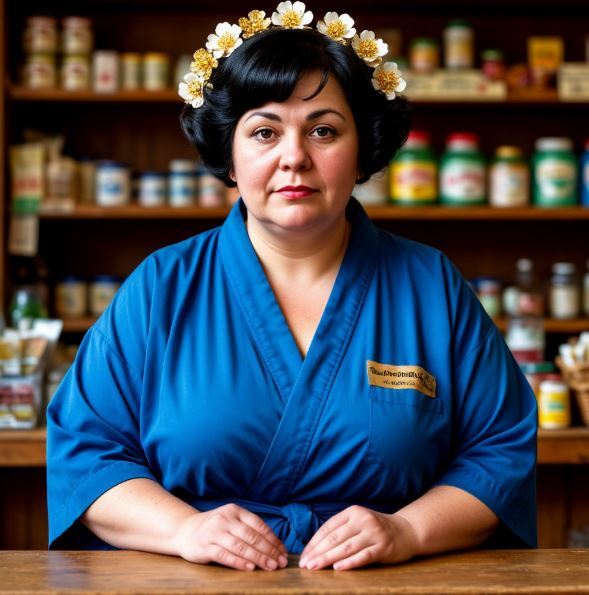 – Добрый день! – произнес Александр Николаевич продавщице с большими… «глазами», стоявшей за прилавком. Она была невысокого роста. Синий халат продавца был надет на босу… А, вот, как она была одета ниже пояса, неизвестно. Не было видно. Зато были видны короткие черные волосы, а на них – белая пластиковая заколка с «золотыми» цветами. Брови, нарисованные темным карандашом, и огромный бюст. Пожалуй, это все приметы, что запомнил Александр Николаевич.