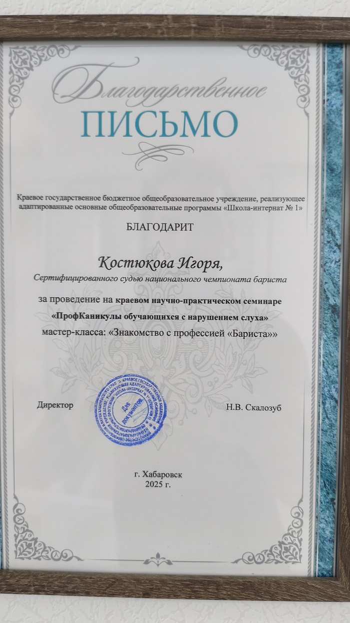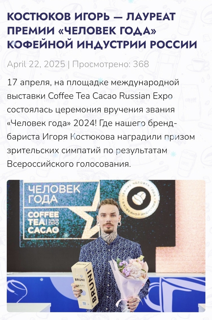При этом всем, естественно я не хожу по городу с агитацией своего внешнего вида, не пропагандирую что-то нетрадиционное или запрещённое, я просто выгляжу так, как мне нравится и занимаюсь при том общественной деятельностью на разных уровнях. Взаимодействую с детскими домами, интернатами, обучаю школьников как специалист отрасли https://t.me/minobrkhabkrai/10911?single= и занимаюсь со студентами как преподаватель доп. образования с присвоением свидетельства Гос. образца об освоении профессии, работаю с предприятиями общественного питания, стал лауреатом премии "Человек Года" кофейной индустрии России по результатам Всероссийского голосования и даже стал инициатором официального появления профессии бариста в России. Кто-то может не согласиться, что это вообще стоило делать, но это для другого поста тема. Выступаю на телевидении и даю комментарии для СМИ