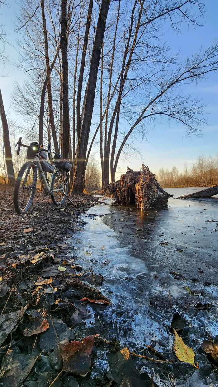 Отличная погода для покатушек: мороз, солнце и нет снега. Редкость для наших краев. А значит продолжаем кататься. Покрутить по замерзшим грунтовкам, посмотреть красивое, попить кофе с видом на осень. Ну не красота? )