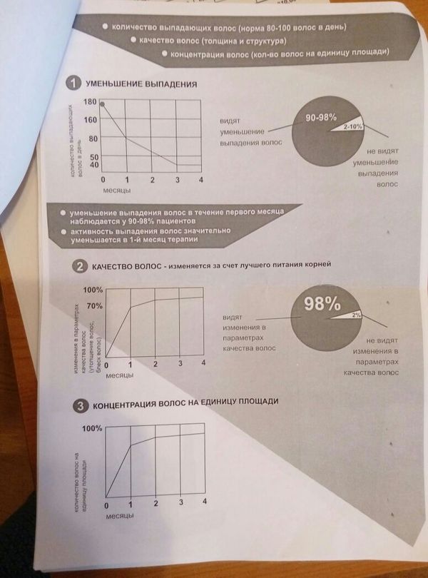 Я промониторил рынок и остановился на модели Theradome PRO LH80, которая соответствует указанным критериям благодаря 80 лазерам на 680 нм и полному охвату. Применяю его через день по 20 минут: надеваю шлем, нажимаю кнопку, лазеры активируются, начинается излучение красного света, и немного ощущается тепло на коже головы. Лазеры, по заявлению производителя, имеют ресурс работы в 6000 часов; возможно, потребуется замена аккумулятора, но это мелочи. Таким образом, устройство покупается лишь раз. (итого 125 000 рублей на весь срок лечения)