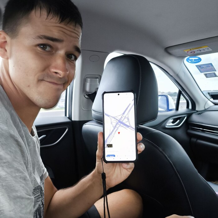 6:12. Первая машина. Парень по имени Кома едет около 100 километров.