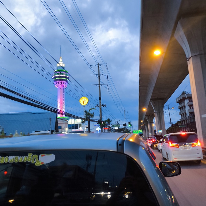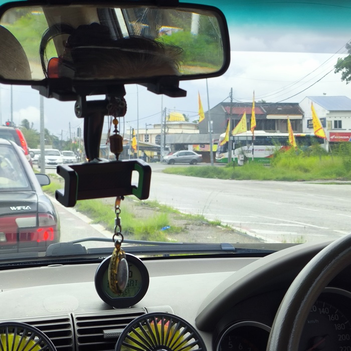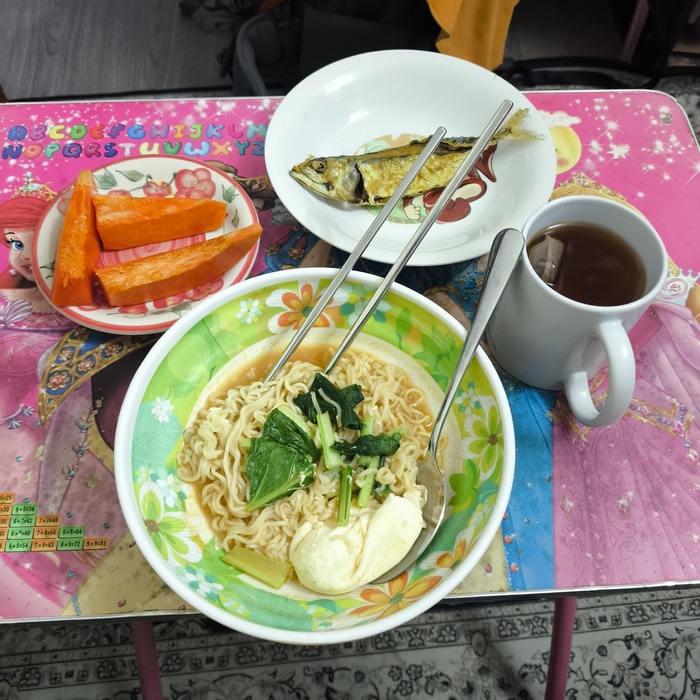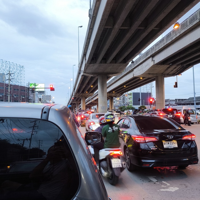 Дождь усиливается и при очередном перестроении мопед теряет сцепление с поверхностью. Нас ведёт в сторону прямо меж машин. Синхронно с Мухаммедом я делаю рывок в сторону и мотоцикл переваливается на другой бок, почти сталкиваясь с другой машиной. Так мы перебрасываем его из стороны в сторону ещё два раза, что-то бьёт мне по голени. Время словно замедляется. Теряем скорость, останавливаемся. Уходим на обочину, проверяем, все ли целы. Целы. Нога немного болит, но сейчас нужно ехать. Корабль ждёт! Мухаммед упаковывается в дождевик и мы продолжаем наш путь к "финишу".