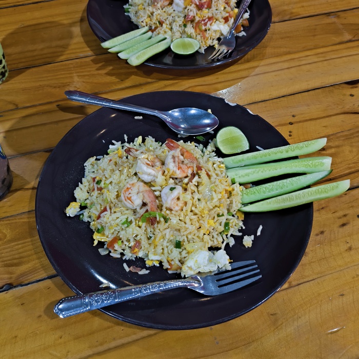 Остановились перекусить. Узнал, что Кома индуист. Как и многие, он переехал сюда с Бали. Христиан тоже очень много.