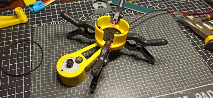 Разбираю, клею, собираю. Да и начерта мне второй ролик уже... Переделываем до кучи держатель. На шкиф и на зажим клею новые адаптеры.